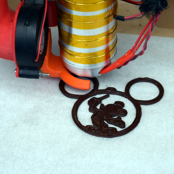 So far, it seems like the most headway has been made in ate because it has certain properties not entirely unlike the thermoplastic filament desktop 3D printers are designed for. If you warm it up enough it will extrude in a nice fine bead, and once it cools off, it will return to a solid state. Get the temperature and timing right, and the results can be quite impressive. During the 2018 Maker Faire we took a close look at the Cocoa Press, a perfect example of how these techniques can be put into practice today with existing technology.
