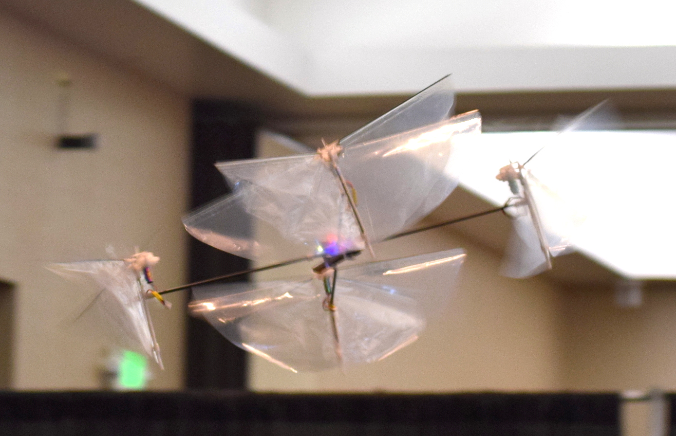 It’s one thing to understand the physics of how it flies, but it’s quite another to see it in the air. The FWMAV doesn’t just fly, it zooms. A side-effect of the ornithopter wings is that the craft is capable of very nearly horizontal flight, but with the hovering ability and pinpoint landing accuracy of a helicopter. We’re told that the team received special dispensation from NASA to fly the FWMAV around the conference center, a decision which was surely appreciated by all those in attendance.