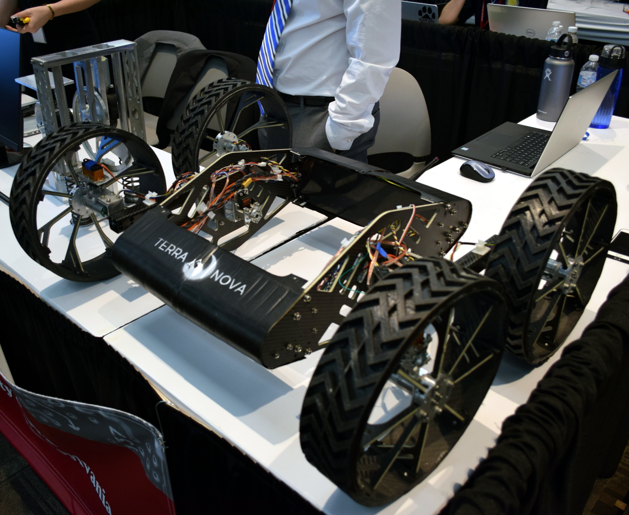 Developed by a team from the University of Pennsylvania, the S.S. MAPR impressed on multiple fronts. It was the only autonomous vehicle to make it into the Finals, and also the only watercraft. Its imposing eight-foot length was also hard to discount in a room largely dominated by tabletop demonstrations. Given its size, there was unfortunately no way for the autonomous boat to show off its moves indoors, but videos recorded during a previous expedition to Pennsylvania’s Schuylkill river were on display for the judges to view.