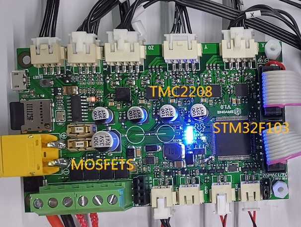 The board is powered by a 72 MHz STM32F103 chip, and uses state-of-the-art Trinamic TMC2208 stepper drivers to achieve near silent operation. The board has an automatic cooling fan to help keep itself cool, and with an XT60 connector for power, it should even be relatively easy to take your printer on the go with suitably beefy RC batteries.