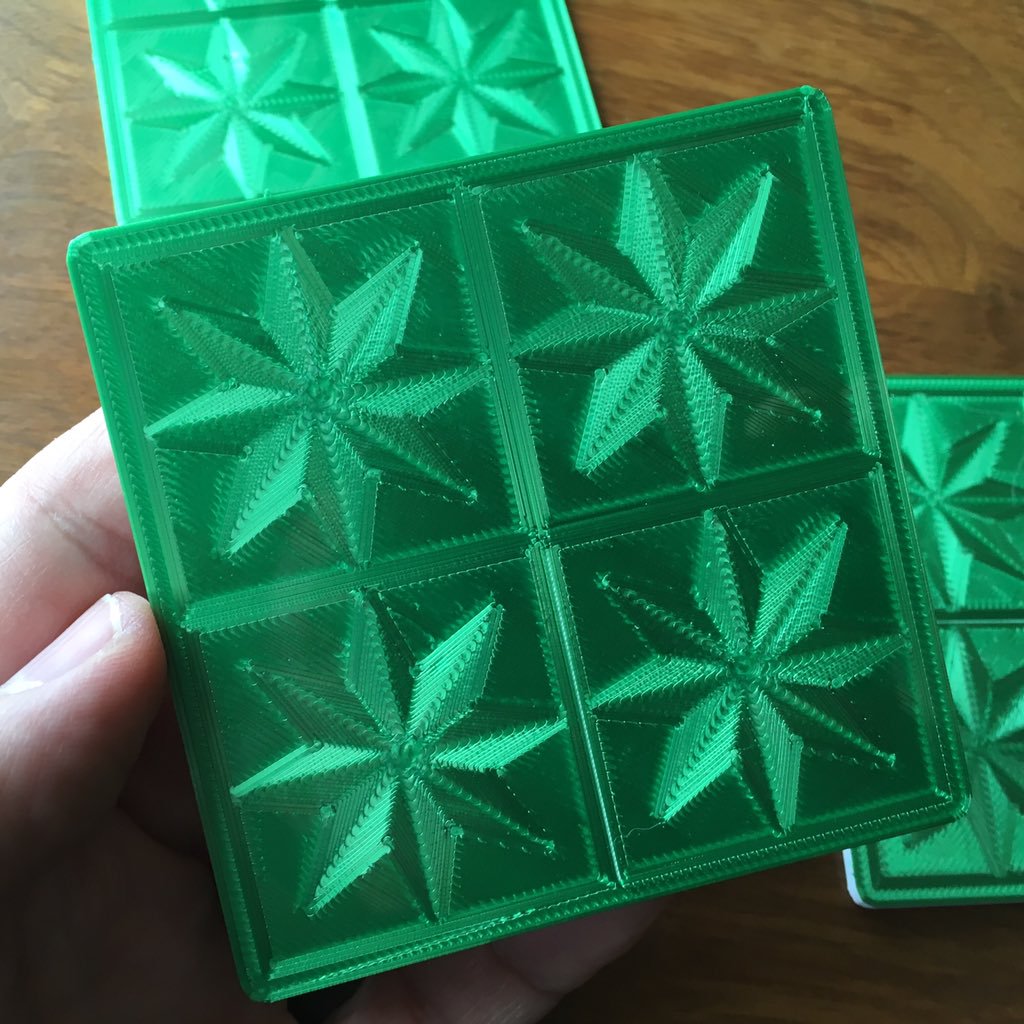 [Mark’s] work comes in two flavors. The first capitalizes on a fairly wide 2mm nozzle and translucent filaments to create vibrant sun catchers. The second relies on the reflective patterns of an opaque filament where the angle of the extrusion lines determine the type of sheen. [Mark’s] progress is beautifully captured on his twitter feed where he rolls out variations of this style.