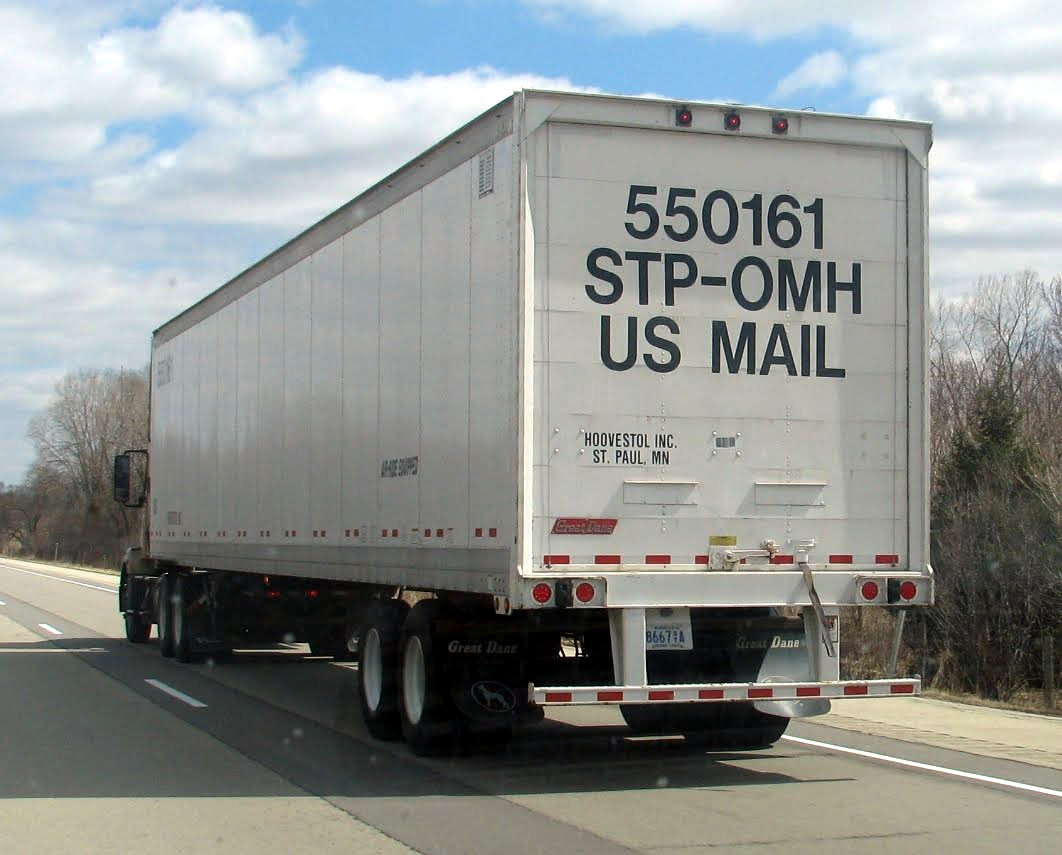US Mail truck making transfers between distribution centers is a common sight on American highways. [Image Source: Harsky’s Blog]