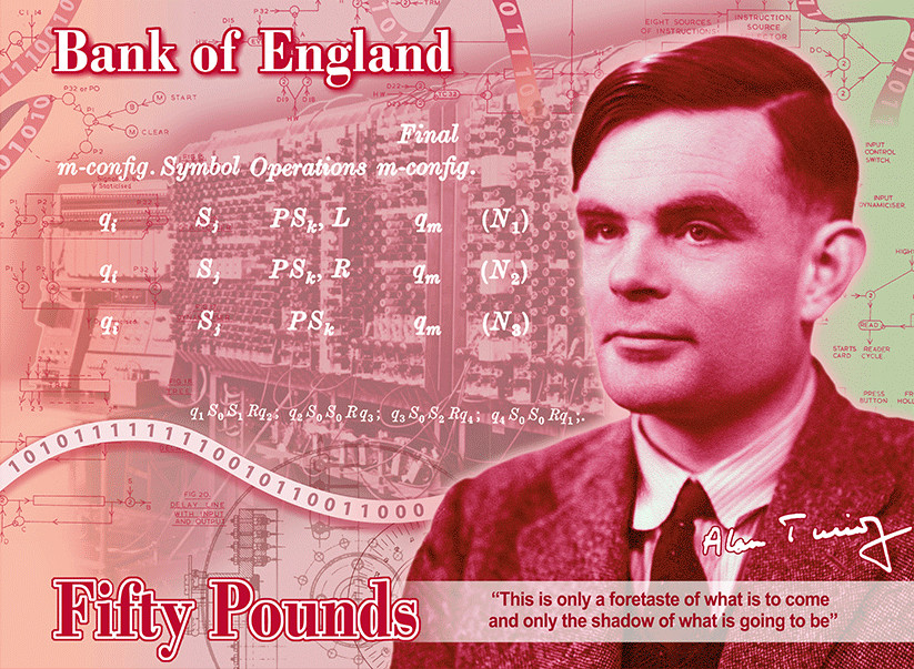 The Bank of England has announced that the new face of the £50 note is to be Alan Turing. This news follows a round of public nominations for a scientist to fill the space, and Turing was in the running with some stiff competition from the likes of Stephen Hawking and Ada, Countess Lovelace.