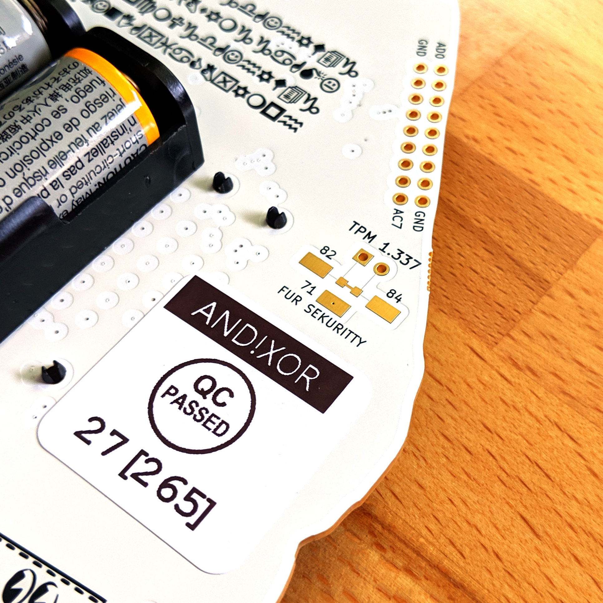 There are two things I don’t like about the front of the badge: the add-on connector and the Rigado module, both near the top of the board interrupt the beautiful design of the rest of the board. There’s an easy solution for that: cover them up with an add-on. AND!XOR sent me all three modules they’ve been involved with this year, and that’s one of the most interesting developments this year.