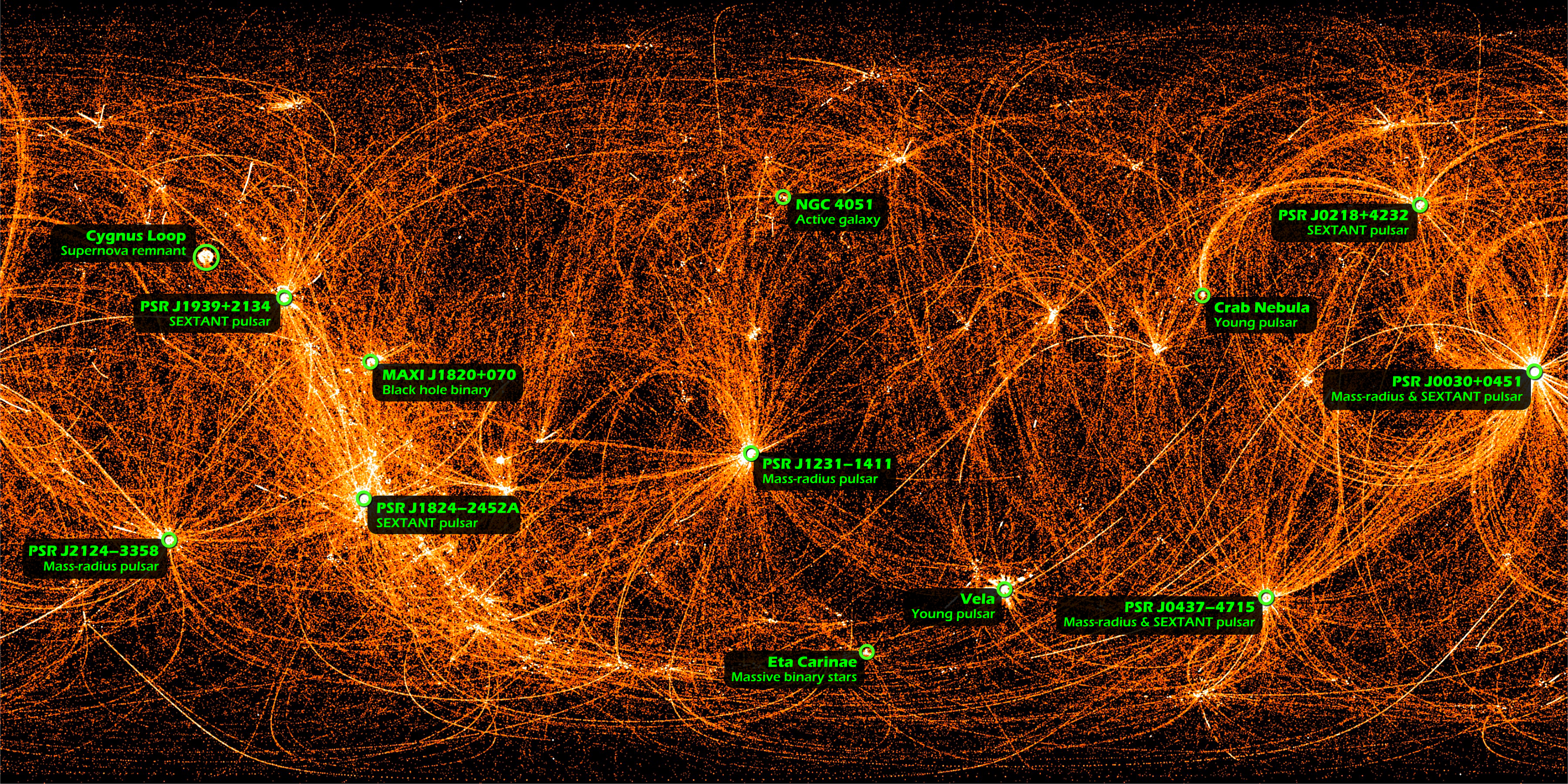 Pretty pictures are hardly the point of NICER’s mission. By carefully recording the spectrum and timing of X-ray signals from known pulsars, NICER will provide the raw data astrophysicists need to determine the true nature of neutron stars. Measuring small frequency variations in pulsar signals will even allow for asteroseismology, perhaps finally revealing what happens inside an object with the mass of two suns crushed into something the size of a small city. And coupled with other instruments, like the Modulated X-Ray Source mounted at the other end of the ISS, NICER is helping to develop high-bandwidth X-ray communications for future deep space exploration. Nice!