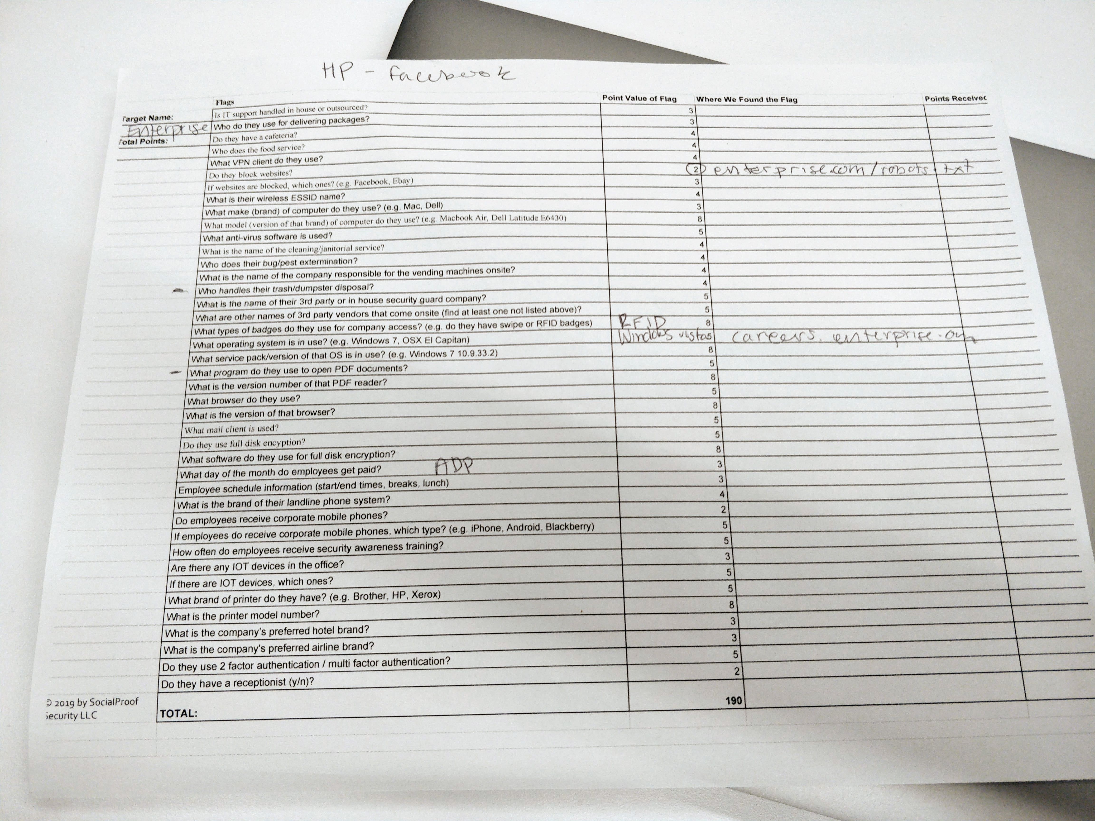 The workshop ended with an OSINT capture-the-flag, where teams of players were instructed to find as much information as they could about a target company from open-source information. Actually vishing a company, however, is against the law unless there are legal steps taken to ensure that the attacks are being done as a way for the company to pen-test their own security.