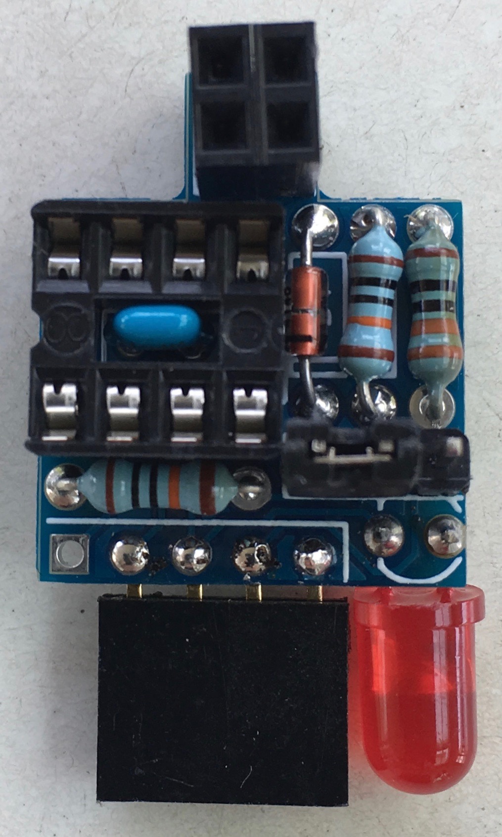 The completed and assembled board, without installed ATtiny MCU.