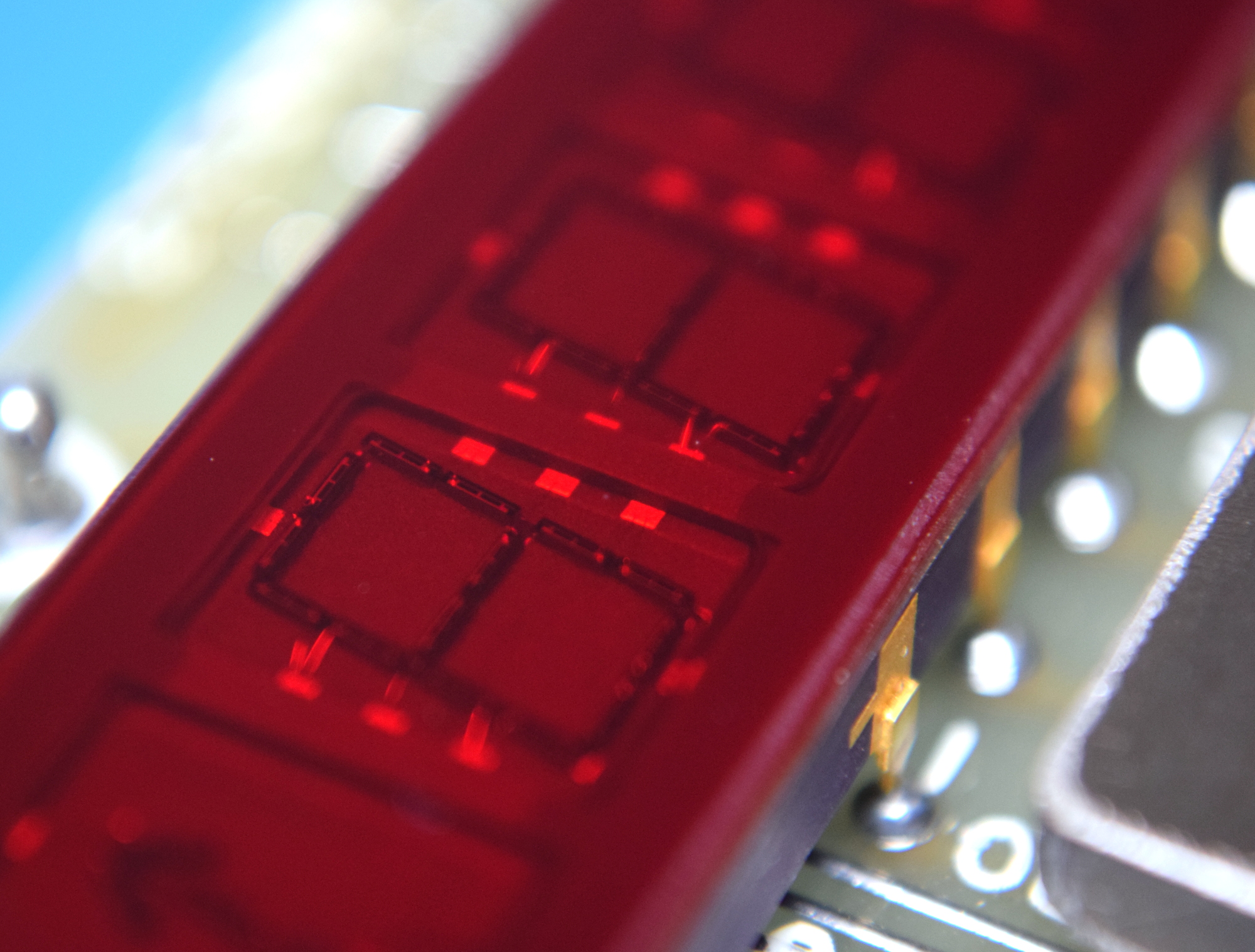 Flipping the board over, it’s interesting to note how few pins appear to be required to drive the display. Sniffing the data passing between it and the controller chip with a logic analyzer could yield some useful information, but the aforementioned conformal coating on the board does make that sort of thing difficult. As it is, I couldn’t even get my multimeter probes through the coating to try and follow the continuity of traces.