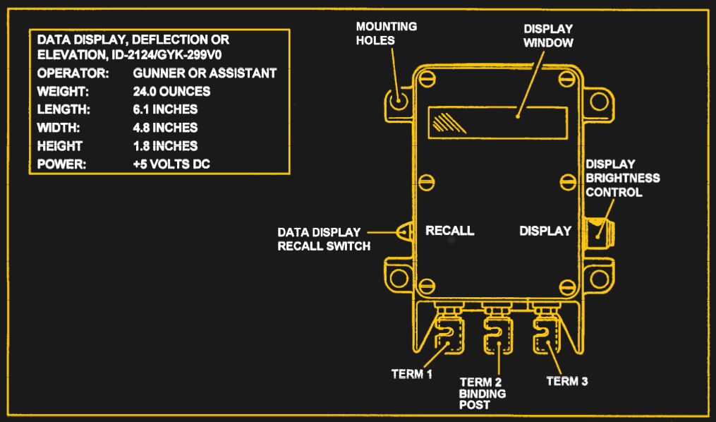 As mentioned previously, there’s actually a decent amount of information about the ID-2124 to be found in unclassified documents floating around online. Field Manual 6-50 mentions it briefly in regards to setting up the artillery piece for use, and even provides a sketch of how two of these devices connect up to the weapon’s primary “Gun Display Unit”, or GDU.