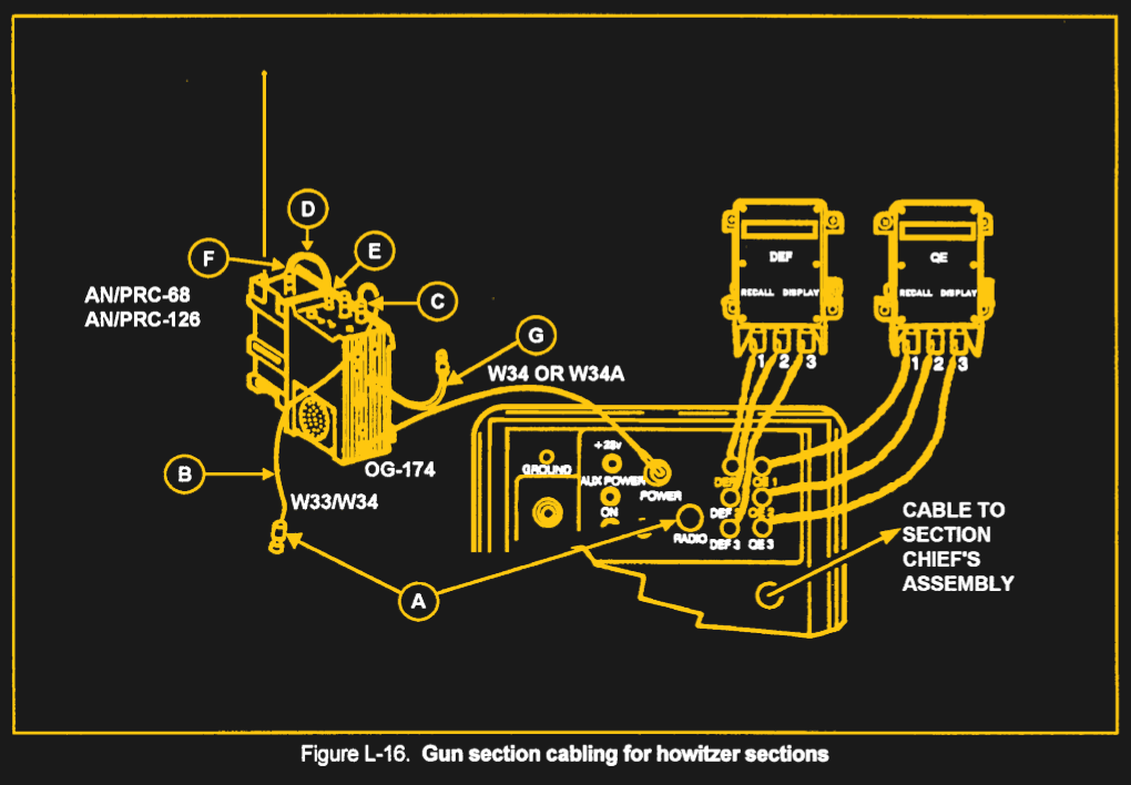 As mentioned previously, there’s actually a decent amount of information about the ID-2124 to be found in unclassified documents floating around online. Field Manual 6-50 mentions it briefly in regards to setting up the artillery piece for use, and even provides a sketch of how two of these devices connect up to the weapon’s primary “Gun Display Unit”, or GDU.