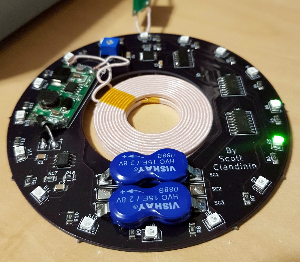 [Scott Clandinin] has come up with a solution to this problem that’s equal parts brilliant simplicity and unabashed overengineering. Using wireless charging and supercapacitors, he’s developing an LED coaster that can be hermetically sealed in clear resin.