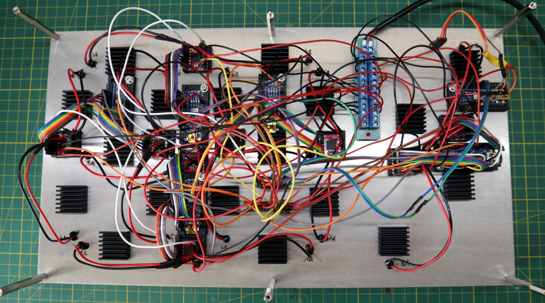 To achieve the effect, he first cut each segment out of copper. The crystal sheets were applied to the segments, thanks to their handy self-stick backing, and the excess was carefully trimmed away. Each segment was then mounted to a TES1-12704 Peltier module by way of thermally conductive epoxy. TB6612FNG motor controllers and a bevy of Arduino Nano’s are used to control the Peltier modules, raising and lowering their temperature as necessary to get the desired effect.