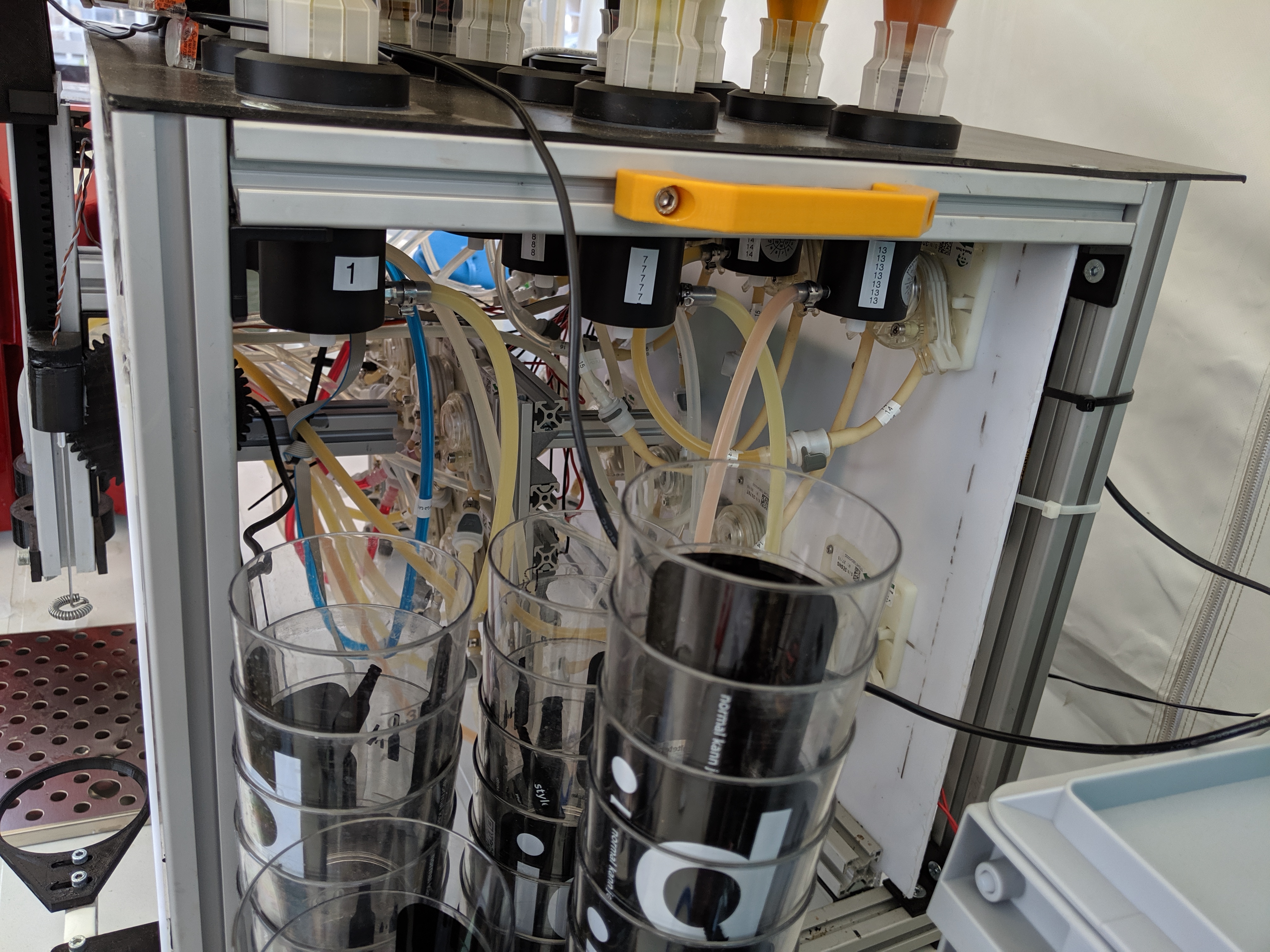 Since 2012, the project has gone through five revisions, the most recent of which the team calls Uba BOT. Delightfully, the cup tray which moves left and right on the front of the machine is connected using a strain gauge. This provides a way for the robot to sense the presence of a cup to avoid dispensing ingredients all over the bar itself. It also provides a feedback loop that verifies the amount of liquids and volume of ice added to the cup. Once everything’s in the cup, a rotary milk frother lowers itself into position to stir things up a bit.