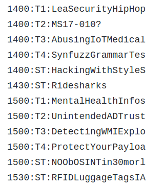 The concept here is fairly simple: there’s a text file in /boot that contains the truncated names of all the talks and workshops in the schedule, one per line, and each line starts with the time that particular event is scheduled for. The script that [vgrsec] wrote opens this text file, searches for the lines beginning with the current time, and generates the appropriate SSIDs. With the number of tracks being run at DerbyCon, that meant there could be as many as five SSIDs generated at once.