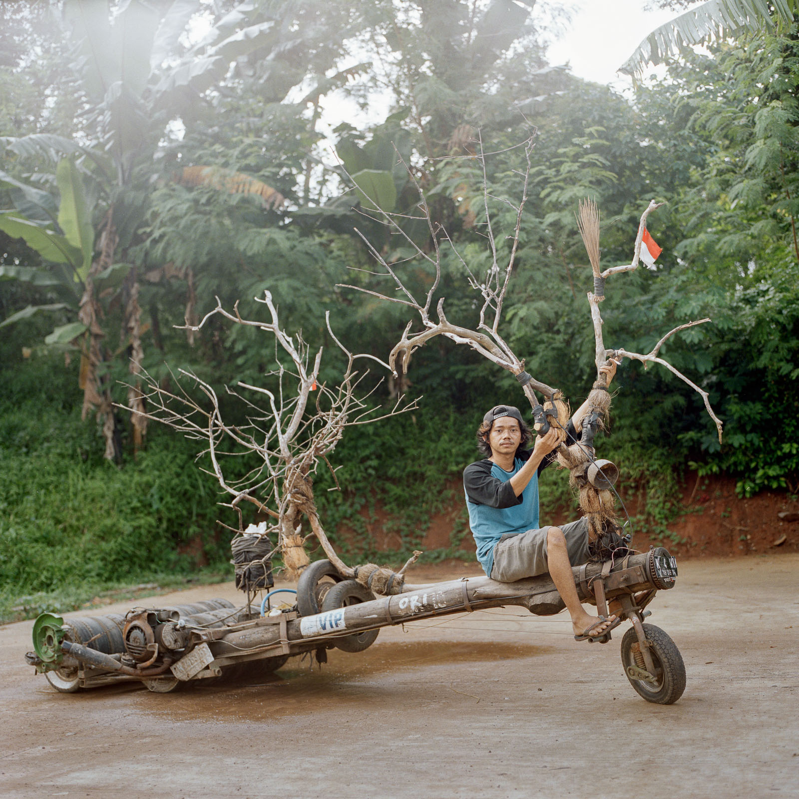 Indonesian photographer [Muhammad Fadli] captures these riders on their Vespa sampah (“garbage Vespa”) and Vespa gembel (“Vespa drifter”), as they are known by locals. The unique design of the riders is partially attributed to their emergence in the early 2000s coinciding with the fall of the Soeharto authoritarian regime. The newfound freedom and self expression, as well as the relaxed law enforcement, contributed to the development of new types of modified vehicles on the road.