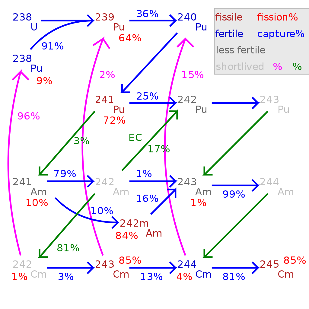The production of transuranic actinides in thermal neutron fission reactors. (CC-BY-SA-3.0)