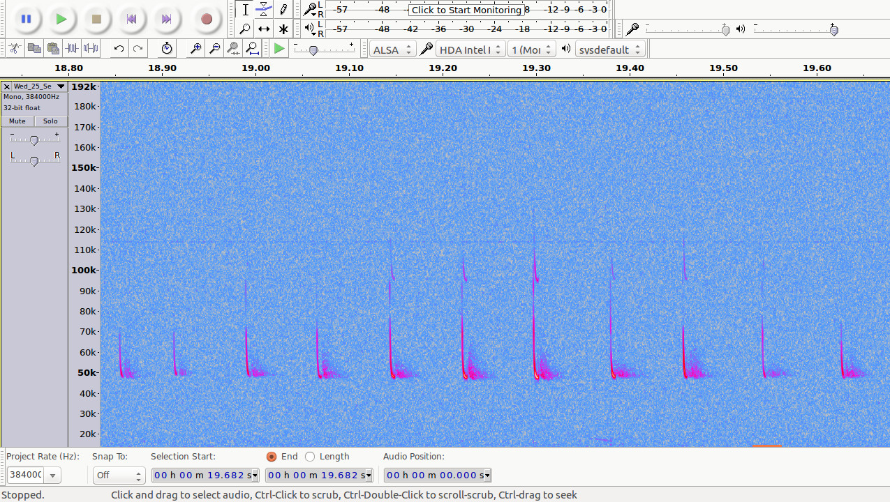 The ‘professional’ option that I chose was the UltraMic384 by Dodotronics , which uses the Knowles electret FG23629 microphone with a 32-bit integrated ARM Cortex M4 microcontroller, capabable of recording up to 192,000 Hz in the audio spectrum. There are also some good DIY Hacker options such as the Audio Injector Ultra 2 for the Raspberry Pi, which can record at up to 96,000 Hz — but this is not quite good enough for all bats. Be aware that sampling rate is twice the audio frequency which can be quite confusing. An UltraMic sampling at 384 KB/s will record at 192 KHz.