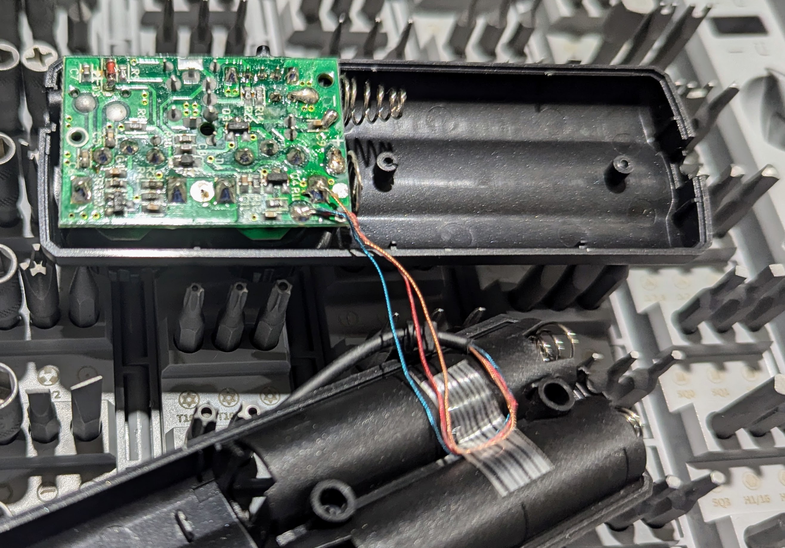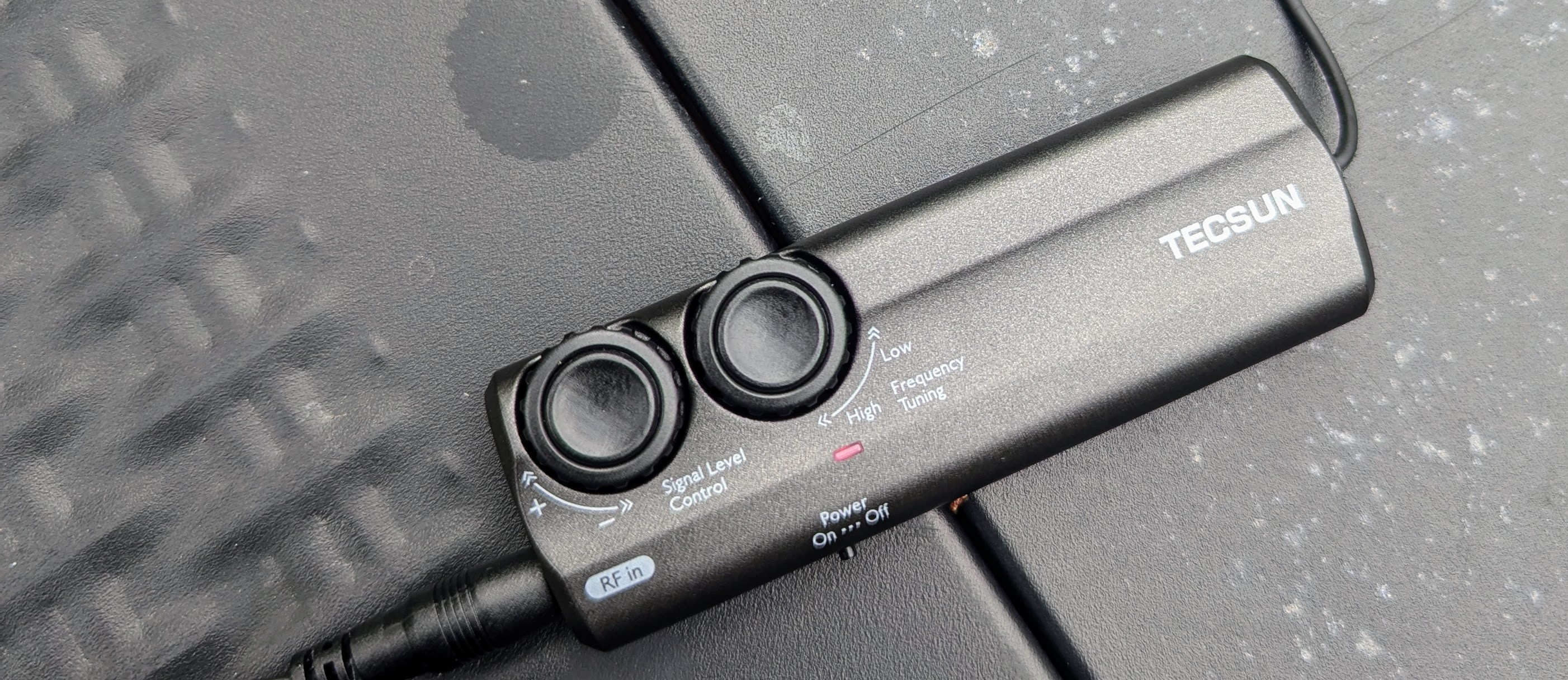 The Tecsun’s control box frequency knob is maddeningly sensitive, but it does seem to help things. Inside the box is a tiny PCB, and I didn’t find any online schematics.