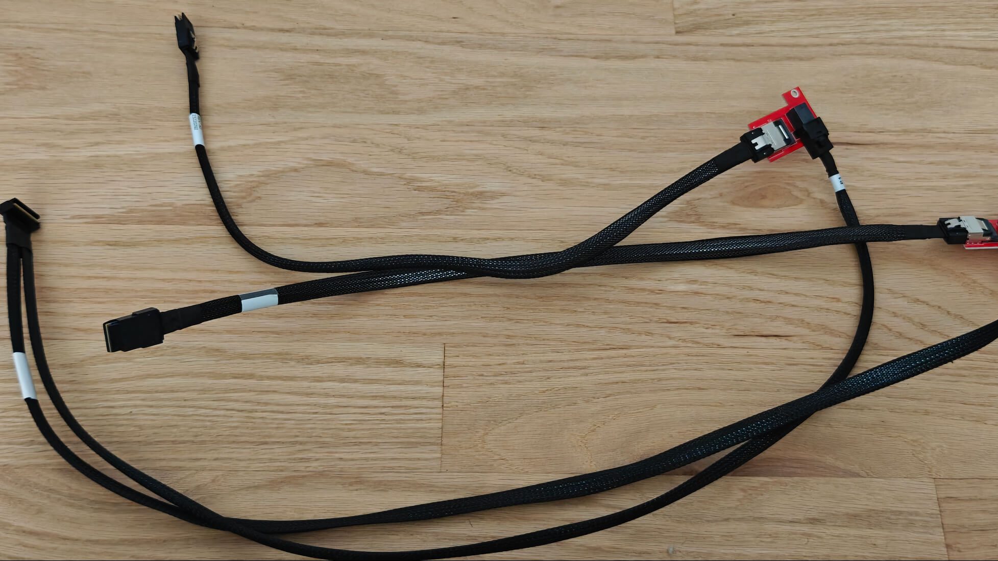 SlimSAS LP x8 to dual MiniSAS x4 cables aren’t easy to find from anyone else, it turns out. Thus, [Neel] turned to Amazon for help sourcing a combination of parts to make this work. A SlimSAS LP 8X to 2x MiniSAS SFF-8643 cable was used, along with a pair of Mini SAS SFF-8087 to SAS HD SFF-8643 female adapters. From there, SFF-8087 cables could be used to hook up to the actual SAS devices required. The total cost? $102.15.