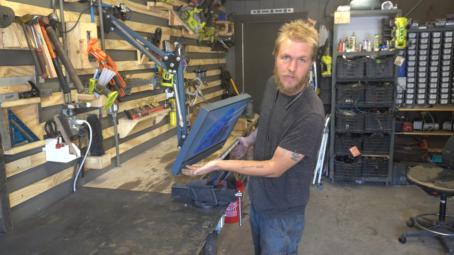And yet, computers are so useful in the shop that [Lucas] from “Cranktown City” built this neat industrial-strength monitor arm. His design will look familiar to anyone with a swing-arm mic or desk light, although his home-brew parallelogram arm is far sturdier thanks to the weight of the monitor and sheet-metal enclosure it supports. All that weight exceeded the ability of the springs [Lucas] had on hand, which led to the most interesting aspect of the build — a pair of pneumatic locks. These were turned from a scrap of aluminum rod and an old flange-head bolt; when air pressure is applied, the bolt is drawn into the cylinder, which locks the arm in place. To make it easy to unlock the arm, a pneumatic solenoid releases the pressure on the system at the touch of a button. The video below has a full explanation and demonstration.