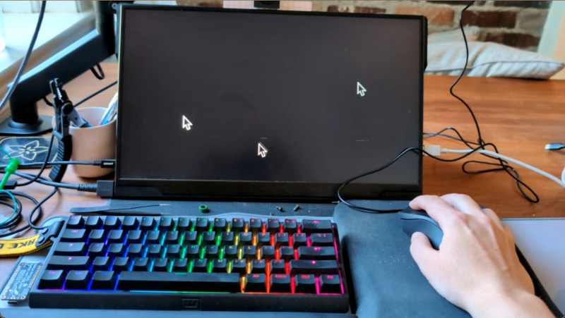 From the “why didn’t we think of that” department comes [dupontgu’s] pong mouse project. The mouse appears and acts like a normal computer mouse until you click the scroll wheel. When you do, the mouse rapidly moves the cursor on the connected computer to play pong. Obviously, though, the paddles and the ball all look like your cursor, whatever that happens to be. So, how do you tell the score? Well, when a score happens, the cursor shows between the two paddles. In the middle means the game is tied. Otherwise, the player closest to the score indicator is winning. The mouse is an off-the-shelf unit, but inside is a tiny XIAO RP2040 board that can act as both a USB host and a USB device. The RP2040 intercepts the USB traffic and can modify it as it sees fit or just pass it unchanged. Part of the secret sauce is to make the mouse use absolute mode so that it can teleport the cursor between two spots. This is common with, for example, touchscreen drivers. However, it is unusual for a mouse to use this mode. Of course, the cursor is actually only in one place at a time, but your eye thinks it is in multiple places at the same time.