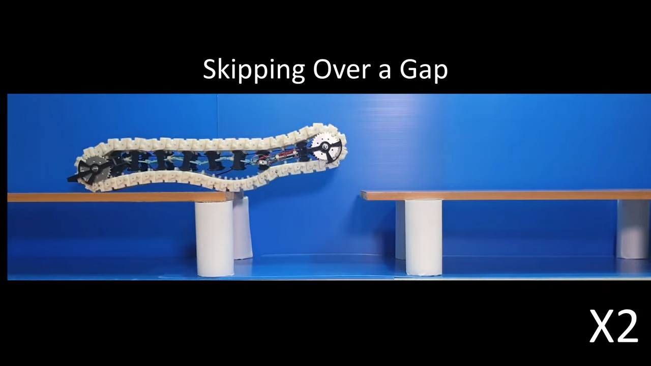 The ability to lock multiple links into a continuous rigid structure allows the robot to rise up from the ground, form itself into a stiff beam, or conform to the ground as desired. A mechanism at the back of the robot unlatches the links as they pass by so the robot retains flexibility as it moves along.