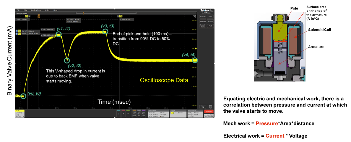 The pseudo pressure sensor operates by analyzing the relationship between electrical and mechanical work within the FCM. Basically, the FCM is a valve that opens to allow the flow of fluid through the machine. Thus, the pseudo-sensor monitors the current at which the valve starts to move, a value that correlates with the pressure inside the system. As pressure increases, a characteristic V-shaped drop in current is observed; this pattern shifts as pressure changes, allowing the system to estimate the pressure based on the observed current.
