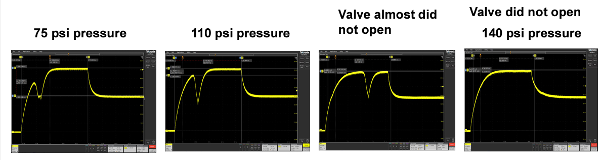 To create the pseudo-sensor, a whole lot of data was collected from the Freestyle hardware. Over 5,000 drink pours were performed with a number of FCM modules, at pressures from 1 to 140 pounds per square inch (PSI) at 5 PSI intervals. The data collected during testing was then fed into MATLAB and Simulink in order to create a mathematical model. The aim was to link the peak size of the current feedback voltage dip measured by the current sensor, and link that to pressure. Sadly, a good reliable correlation was hard to come by.