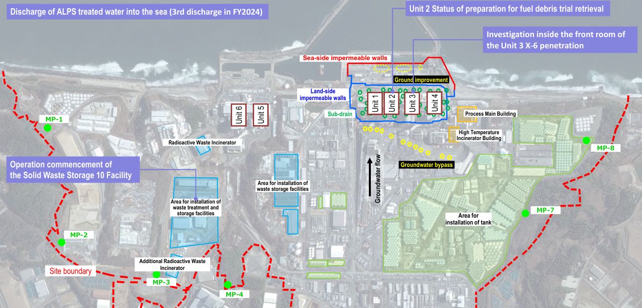 Detailed updates on the progress of the clean-up can be found as monthly reports, which also provide updates on any changes noted inside the damaged units. Currently the cores are completely stable, but there is the ongoing issue of ground- and rainwater making it into the buildings, which causes radioactive particles to be carried along into the soil. This is why groundwater at the site has been for years now been pumped up and treated with the ALPS radioactive isotope removal system. This leaves just water with some tritium, which after mixing with seawater is released into the ocean. The effective tritium release this way is lower than when the Fukushima Daiichi plant was operating.