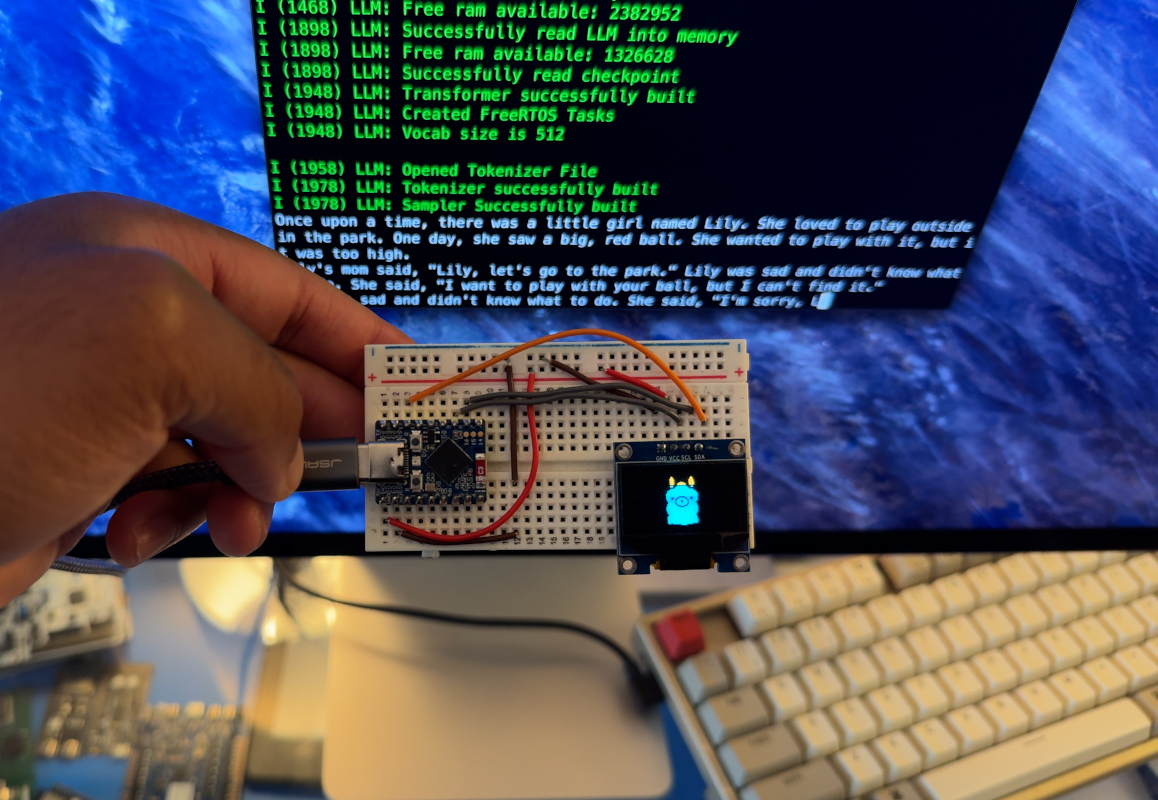 Of course, some concessions have to be made to get an LLM running on underpowered hardware. In this case, the computer of choice is an ESP32, so the dataset was reduced from the trillions of parameters of something like GPT-4 or even hundreds of billions for GPT-3 down to only 260,000. The dataset comes from the tinyllamas checkpoint, and llama.2c is the implementation that [DaveBben] chose for this setup, as it can be streamlined to run a bit better on something like the ESP32. The specific model is the ESP32-S3FH4R2, which was chosen for its large amount of RAM compared to other versions since even this small model needs a minimum of 1 MB to run. It also has two cores, which will both work as hard as possible under (relatively) heavy loads like these, and the clock speed of the CPU can be maxed out at around 240 MHz.