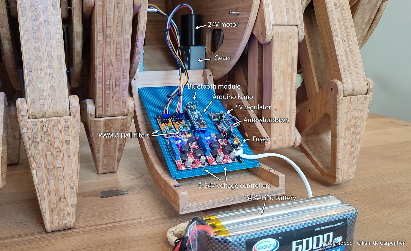 From there the design was moved to Fusion 360, where it could then be sent to a CNC machine to create all of the parts for the 12-legged table. An Arduino Nano controls the leg movements, with power to the legs’ crankshafts provided by 24 V brushless motors. Finally, a Bluetooth module is included to allow the table to receive commands from a modified Nintendo Wii “Nunchuk” — itself an impressive project that we covered back in 2020.