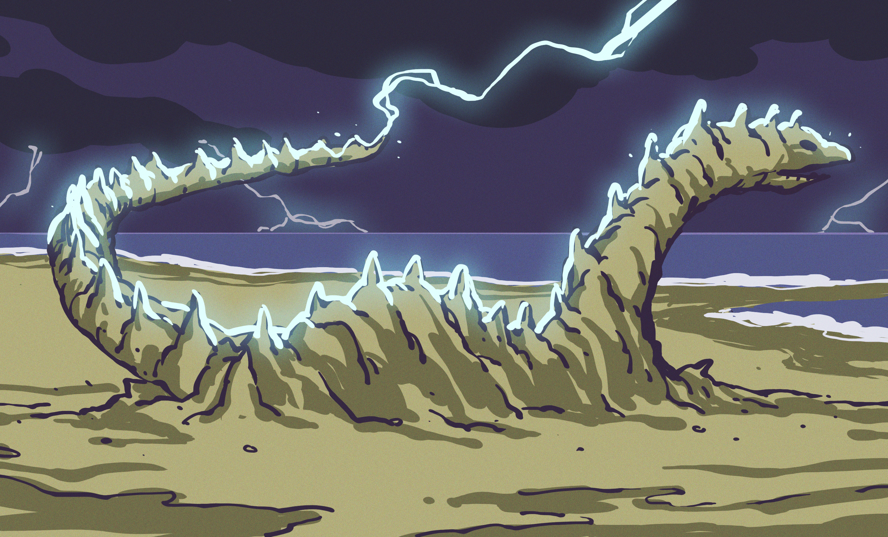 When sand fulgurites are formed, the sand rapidly cools and solidifies. Because of this, they tend to take on a glassy interior. As you might imagine, the size and shape of a fulgurite depends on several factors, including the strength of the strike and the depth of the sand being struck. On average, they are 2.5 to 5 cm in diameter, but have been found to exceed 20 cm.