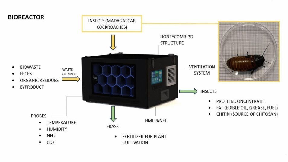 As the current frontier of humanity in space, the International Space Station is heavily reliant on Earth not only for fresh supplies but also as a garbage disposal service for the various types of waste produced on the ISS by its human occupants. As future manned missions take humans further away from Earth, finding ways to reprocess this waste rather than chucking it out of the nearest airlock becomes a priority. One suggested solution comes from a Polish company, Astronika, with their insect bioreactor that can process organic material into useful biomass.