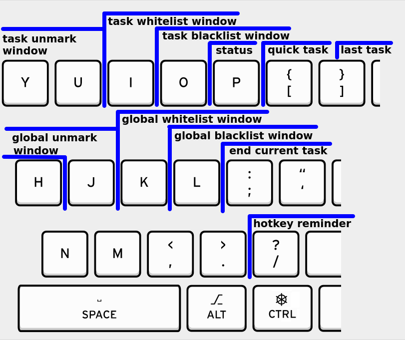 The algorithm currently is simple and effective. Press a hotkey to start a new task or resume a previous one – a task contains a list of “good” windows, and optionally a list of “bad” windows. There’s a global whitelist of known-good windows, containing mostly window titles like New Window - Firefox and Save As. When I open a new window, the system starts beeping at me within half a second – giving me immediate feedback that my Alt-Tab was perhaps uncalled for. As it’s beeping, I have the option to either whitelist a window for this specific task, or blacklist it – the whitelisting stops the beeping immediately, and the latter raises the beeping noise intensity next time I switch to the window again. As I’m working Alt-Tabbing between windows I need, the workplace is, and whenever I switch to a blacklisted window, I instantly get a notification that this particular window switch is not something I want myself to be doing.