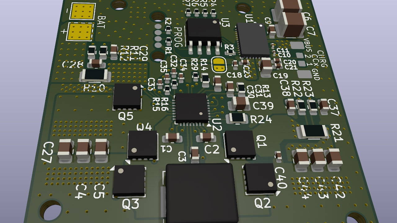 Ever want a seriously powerful PCB for charging a Li-Ion pack? Whatever you want it for, [Redherring32] has got it — it’s a board bearing the TPS25750D and BQ25713 chips, that lets you push up to 100 W into your 1S Li-Ion pack through the magic of USB Power Delivery (USB-PD).
