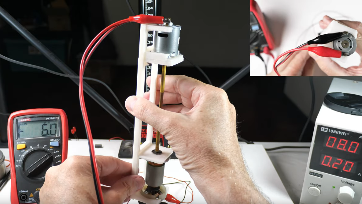 Now, the thing with complication is that it’s often instructive. The simplicity of the magnetic compass masks the theory behind its operation to some degree and completely fails to deliver any quantitative data on the Earth’s magnetic field. [tsbrownie]’s gadget is built from a pair of electric motors, one intact and one stripped of its permanent magnet stators. The two are mounted on a 3D printed frame and coupled by a long shaft made of brass, to magnetically isolate them as much as possible. The motor is powered by a DC supply while a digital ammeter is attached to the terminals on the stator.
