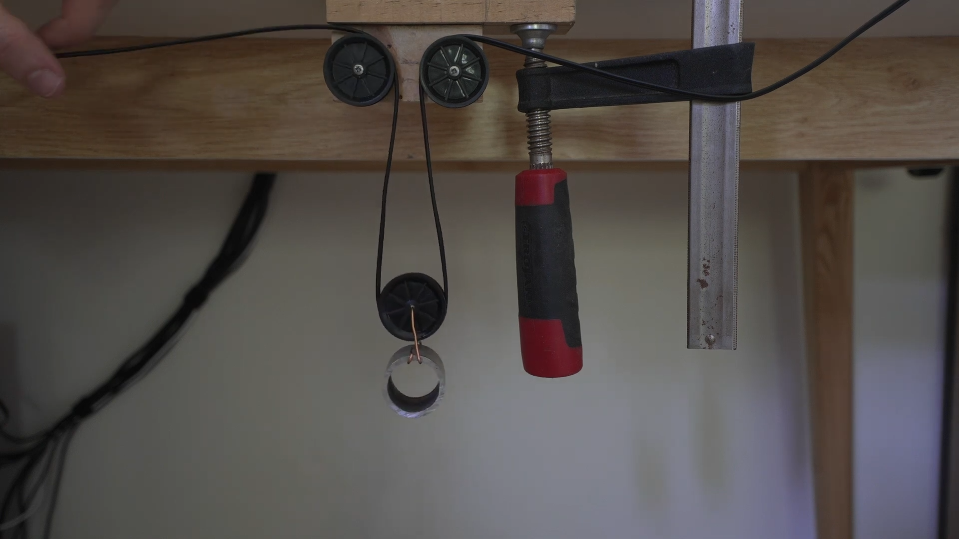 The concept is simple. [Barnso]’s system uses three pulleys. The headphone cable goes to the PC, and then runs over the first pulley. It then runs under a second pulley which is free to move, but weighted so that it naturally wants to fall down under gravity. The cable then comes back up over a third pulley, and then runs to the headphones on [Barnso]’s head. Basically, it’s a super simple cable retraction mechanism that keeps the long headphone cable organized and in one place.