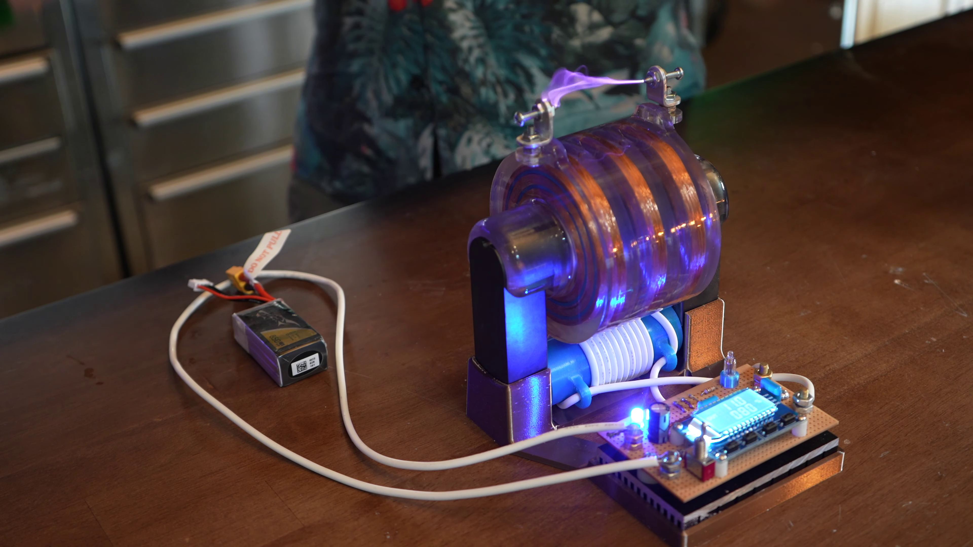 On the following attempt [Jay] took his time during the potting process, and added sharp adjustable electrodes to act as voltage limiters on the output. The result is beautiful 2.25-inch plasma arcs on only 11 V and 100 W input power. This also meant he could power it with a single 580 mAh 3S LiPo for power.