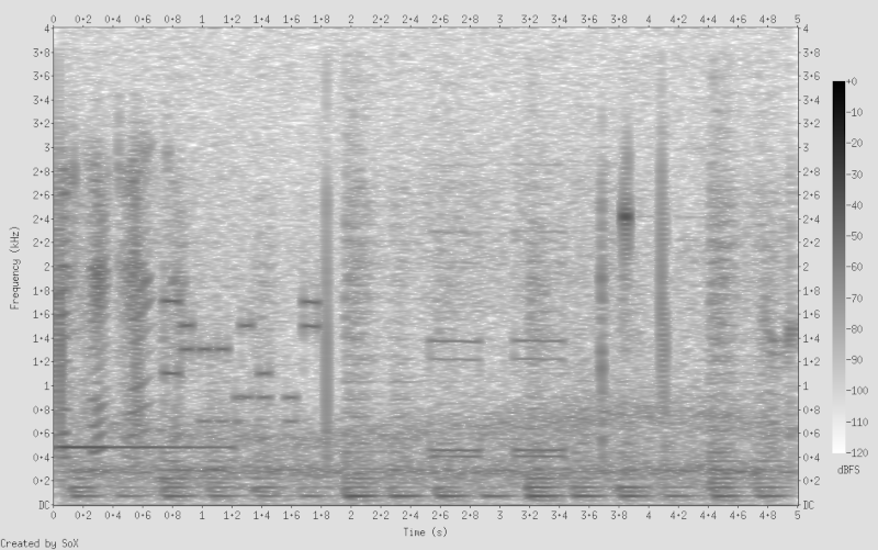 The signal was not common DTMF, as you might have guessed. Instead, it was a standard known as SS5. In addition to the tones being correct, the audio clip seemed to obey the SS5 protocol. SS5 was the technology attacked by the infamous blue box back when hacking often meant phone phreaking.