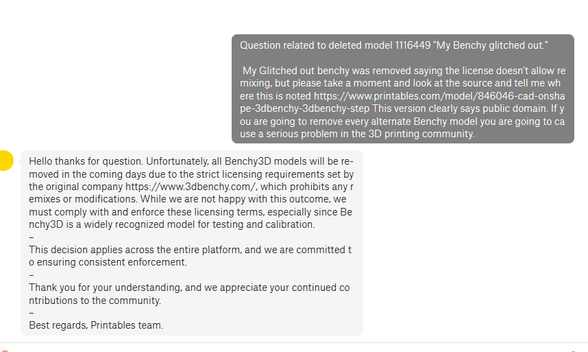 Case in the point the ever popular 3DBenchy model, which was intended to serve as a diagnostic aid by designer [Creative Tools]. Although folks have been spinning up their own versions of this benchmark print for years, such derivative works were technically forbidden by the original model’s license — a fact that the company is now starting to take seriously, with derivative models reportedly getting pulled from Printables.