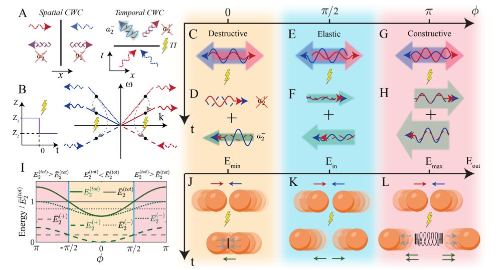 Top image: Temporal coherent wave control and photonic collisions enabled by time-interfaces. (Credit: Emanuele Galiffi et al., Nature Physics, 2023)