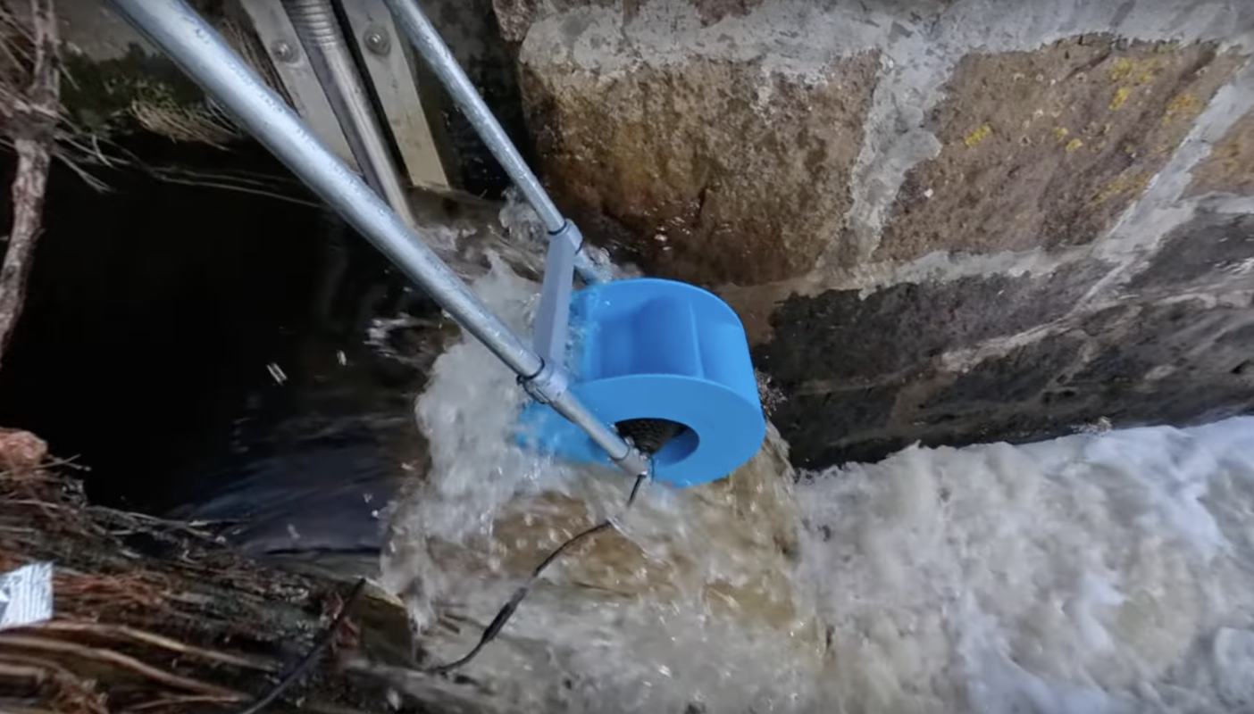 [Beyond the Tint] is building this mostly as a proof-of-concept, starting with a 1,000W hub motor from an e-bike that’s been removed from its wheel. A 3D-printed waterwheel attachment is installed in its place, and the fixed shaft is attached to a homemade ladder-looking mechanism that allows the entire generator to be lowered into the flow of a moving body of water, in this case, a small stream. A bridge rectifier converts the AC from the hub motor (now a generator) into DC, and after a few measurements and trials, [Beyond the Tint] produced over 30W with the first prototype.