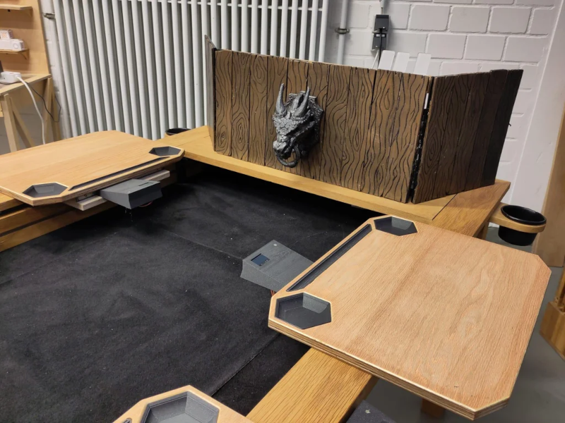 Usually, when we see a gaming table, the table itself is the game. If we were building a D&D table, we might consider adding a printer.