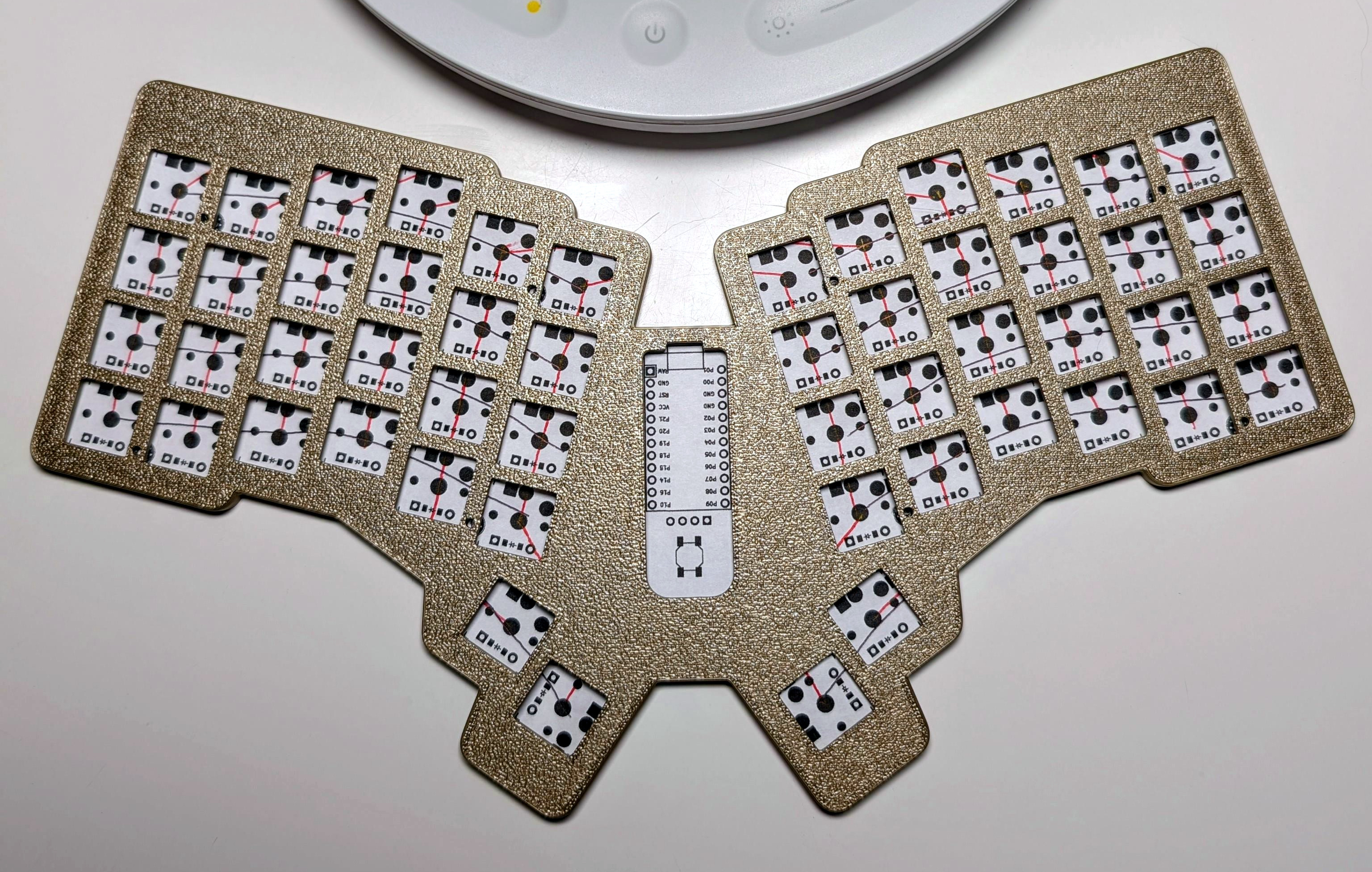 Here’s what we know so far: this will be a column-staggered ortholinear board with hot-swap support for Kailh chocs, an OLED display. The idea is to make something ultra low-profile.