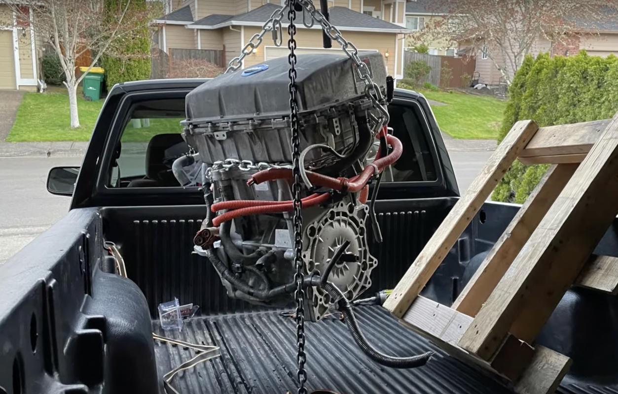 For conversions using the Leaf battery pack and motor, [Paul] points out that it’s important to find the motor with the inverter and power distribution unit all integrated together, rather than sourcing them all separately since they don’t always mix-and-match well. There are several third-party parts available for getting these motors running in other applications, including a coupler to mate the motor to a transmission. However, this still needs some custom fabrication to properly attach to the Frontier’s drivetrain. With a new controller as well, the Frontier engine can be pulled, the Leaf engine dropped in, and the battery set into the bed and connected.
