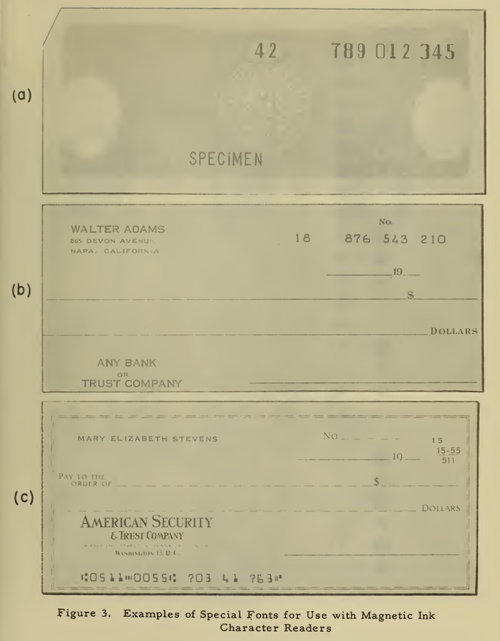 As is so often the way, the world did not agree on one standard for MICR purposes. Developments across the banking world occurred during the 1950s, with two major magnetic fonts being developed in parallel.