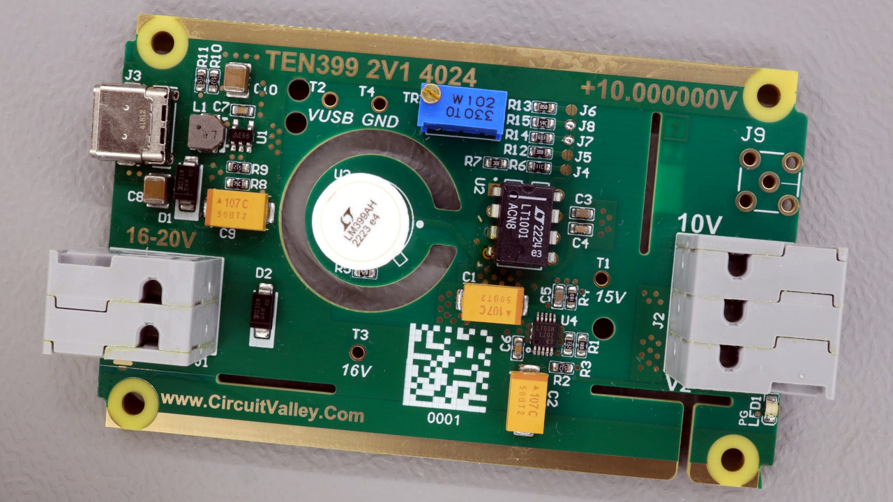 [Gaurav]’s implementation maximizes this special part’s capabilities while making it convenient to use. The PCB has a precision linear regulator that accepts an input voltage from 16 V to 20 V, plus a boost converter that lets you power it from USB-C. The board itself is carefully designed to minimize thermal and mechanical stress, with the ADR1399 separated from the bulk of the board with wide slots. The first video below covers the design and construction of an earlier rev of the board.