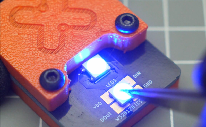 However, what if the LED is blinking but not totally right? How can you tell? Easy, there’s a reference LED that changes colors in sync with the device under test. So, if the LEDs match, you have a winner. If not… well, it’s time to desolder another donor LED.