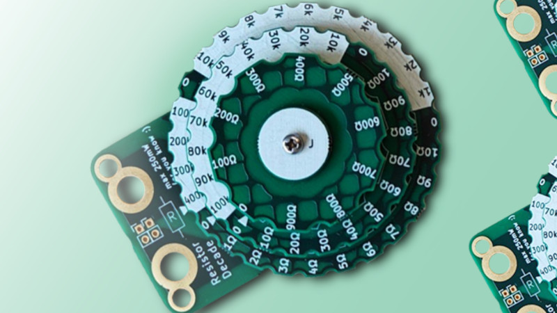 We like this as a conference giveaway, being used to badges it’s refreshing to see a passive take on a PCB artwork. Meanwhile this isn’t the first resistance box we’ve seen with unconventional switches.