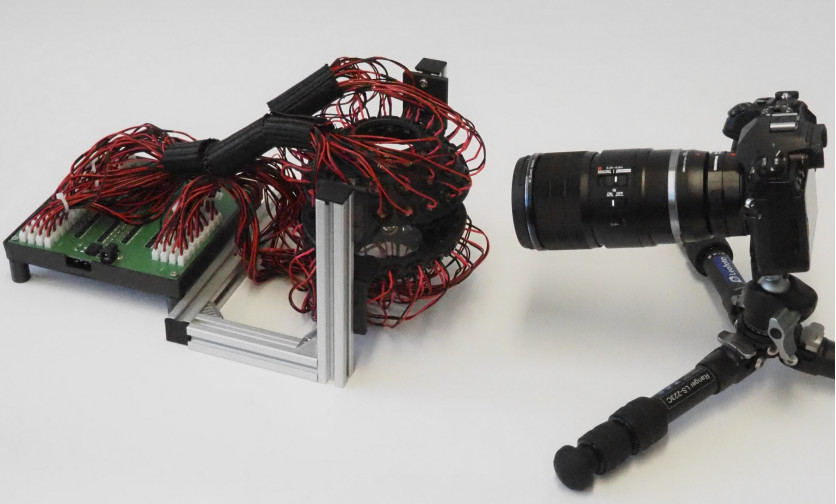 There isn’t a whole lot of technical detail on the device itself, other than the fact that spherical chamber has a radius of 60 mm and is fitted with 96 Murata MA40S4R/S transducers operating at 40 kHz. The paper notes that early attempts to control the transducer array with a Arduino Mega failed, and that the team had to switch over to a FPGA. With their current signal generator stage, the researchers are able to rotate the specimen by 5° angles.